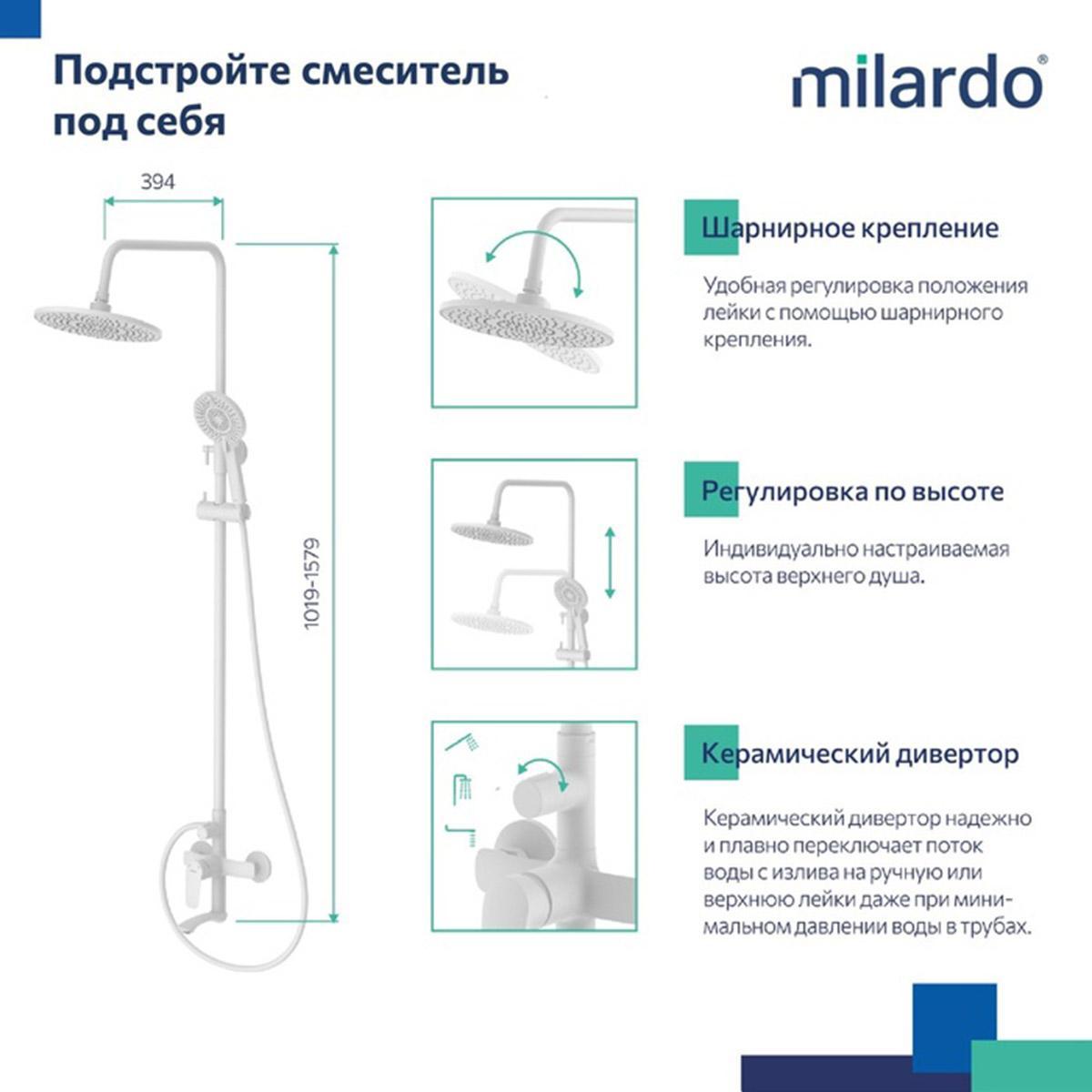 Душевая система с тропическим душем Milardo Rora, белая матовая