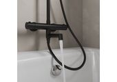 Душевая система с тропическим душем Rora отличается универсальным характером: основной акцент в его дизайне приходится на плавные линии корпуса и трендовый черный цвет.