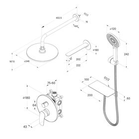 Встраиваемая душевая система с тропическим душем Milardo Rora RORBL03M68, со смесителем, черная