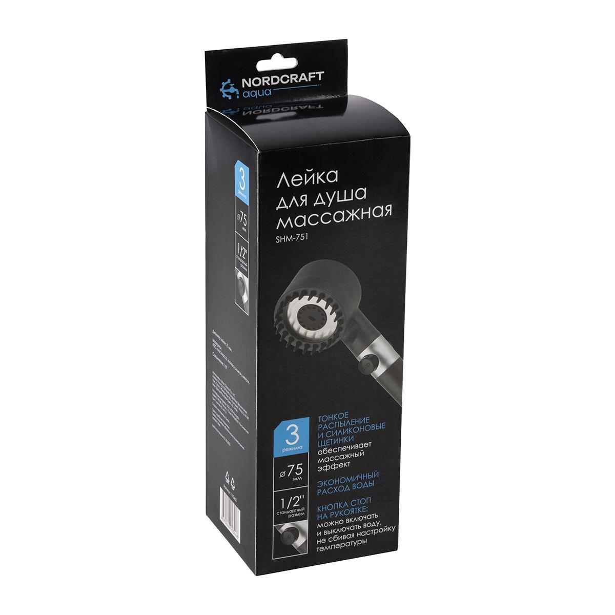 Лейка для душа Nordcraft SHM-751, 3 режима, черная