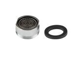 Аэратор с наружной резьбой М24 для трубчатого излива в пластиковом корпусе и сеткой из нержавеющей стали.