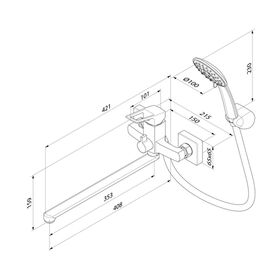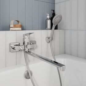 Смеситель для ванны с душем Milardo Atlantic, с длинным изливом и керамическим дивертором, хром