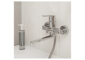 Смеситель предназначен для подачи воды в ванну, обеспечивает комфортное использование душа. Устанавливается на вертикальная поверхность.