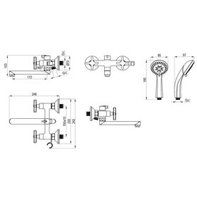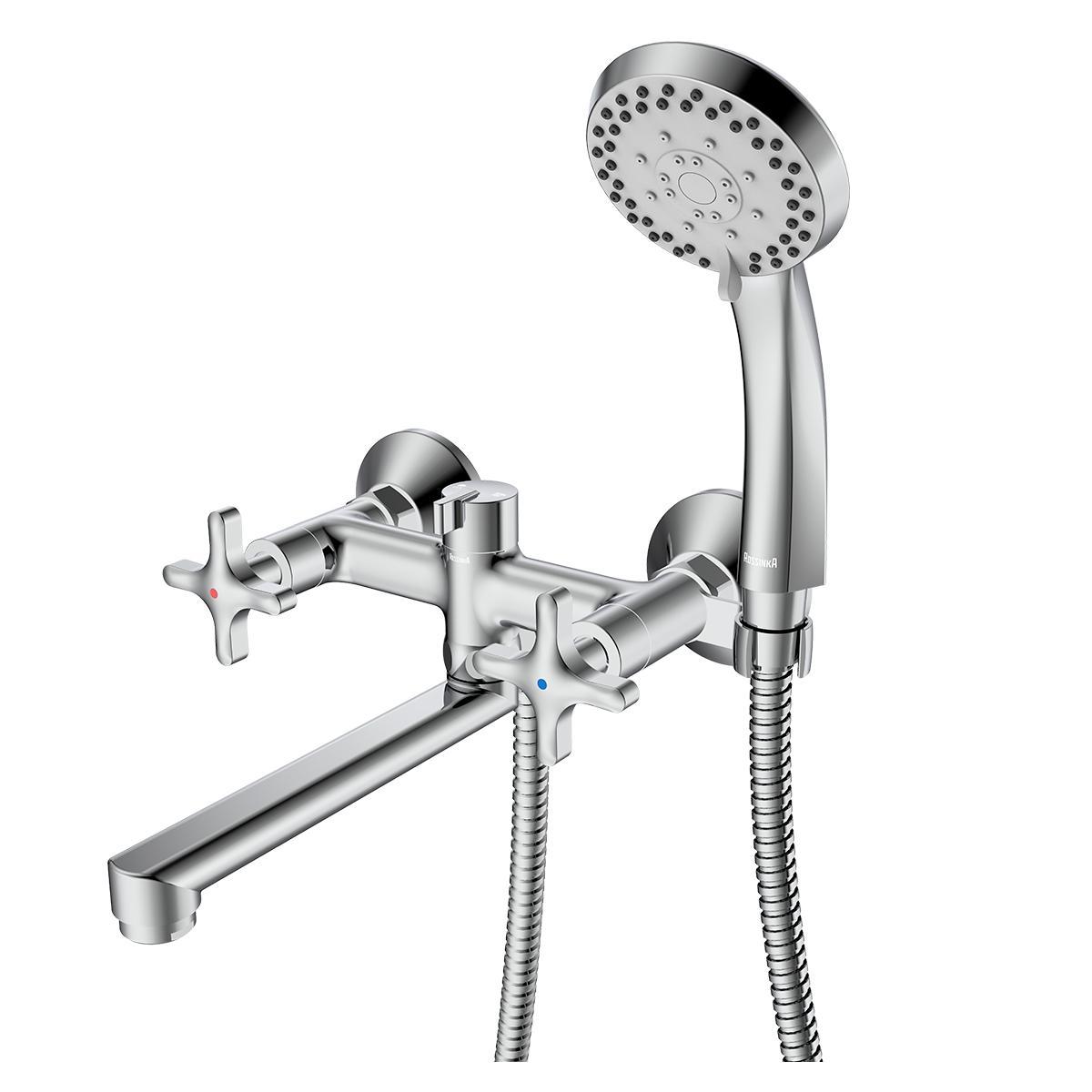 Смеситель для ванны с душем Rossinka RS39-85, двухвентильный, хром