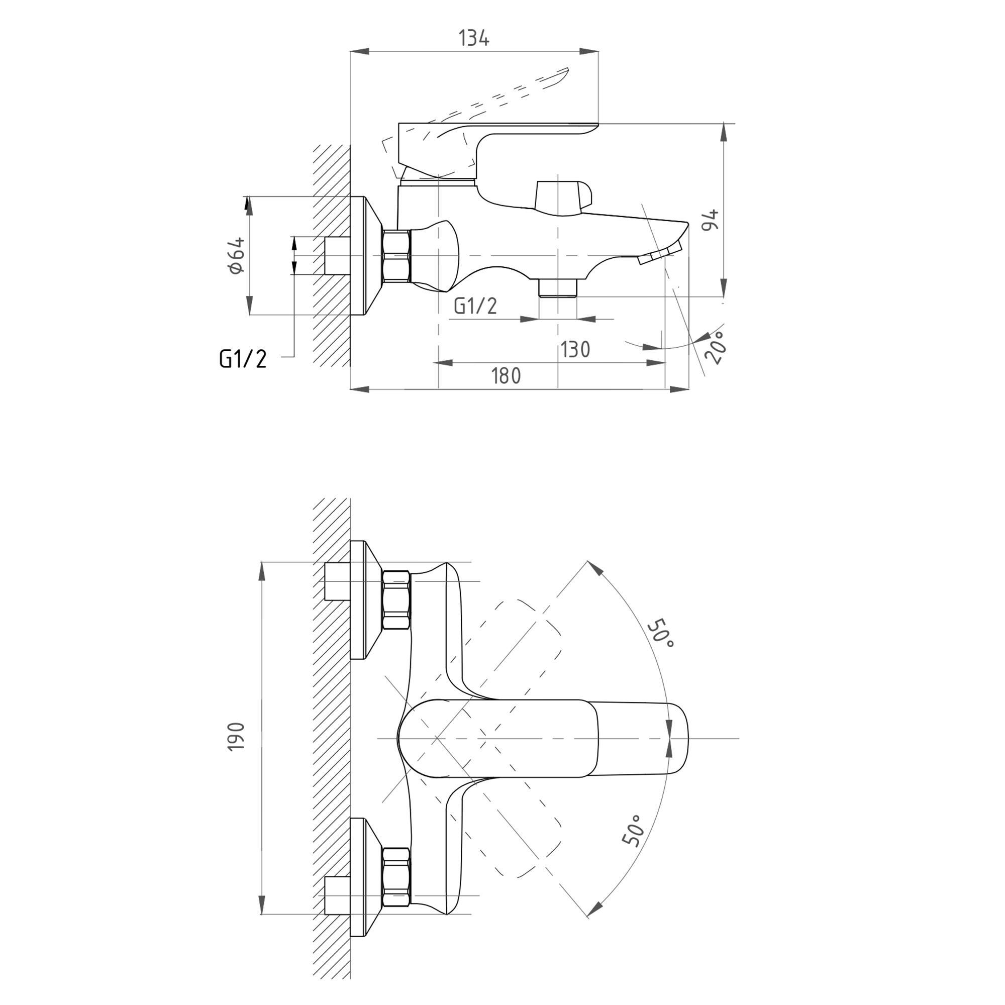 Смеситель для ванны с душем Tsarsberg TSB-24G-01, графит