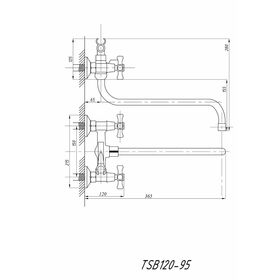 Смеситель для ванны Tsarsberg TSB-120-95, с длинным изливом, хром