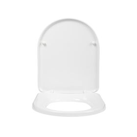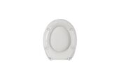 Полипропиленовое сиденье для унитаза белого цвета классической округлой формы.