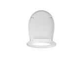 Полипропиленовое сиденье для унитаза белого цвета классической округлой формы.