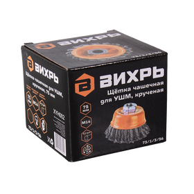 Щётка чашечная для УШМ, крученая, 75 мм Вихрь