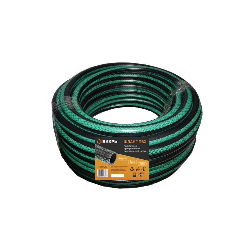 Шланг Вихрь поливочный ПВХ, 3/4 дюймов, 15м