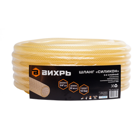 Шланг поливочный Силикон трёхслойный армированный 3/4 дюймов, 25м (прозрачный) Вихрь