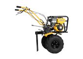 - Повышенная проходимость — мотоблок оснащен тракторными пневматическими колесами.