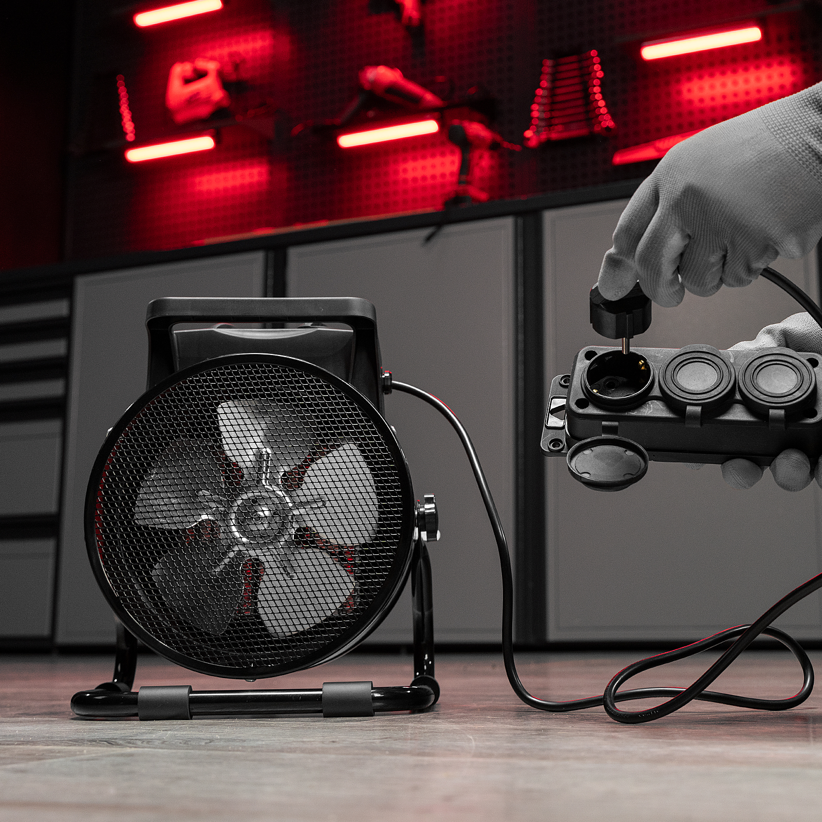 - 3 режима работы — вентиляция (без нагрева), обогрев на частичной или полной мощности.