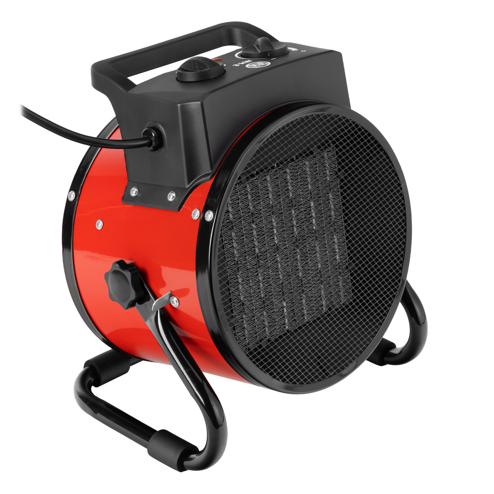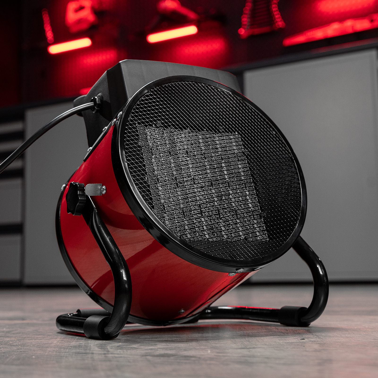 - Эргономичность — компактная тепловая пушка весит 2,3 кг, удобная рукоятка упрощает перемещение.