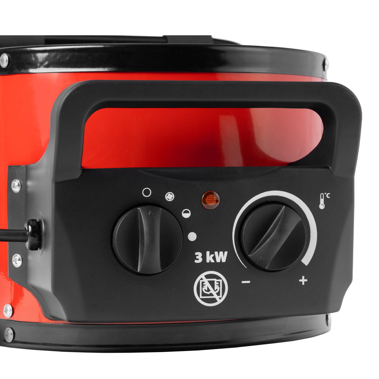 Керамическая тепловая пушка MTX FH-3000 98402 с термостатом, максимальной мощностью 3 кВт, работает в 3 режимах и предназначена для обогрева складов, мастерских и других нежилых помещений площадью до 30 м2. Также может использоваться для быстрой просушки различных поверхностей, например, стяжек пола, оштукатуренных и окрашенных стен.
