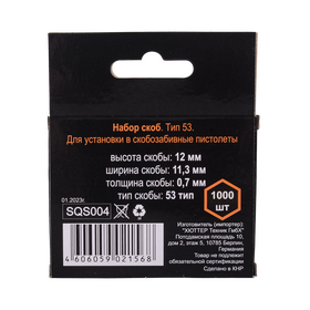 Скобы для мебельного степлера Вихрь (12мм, тип 53)