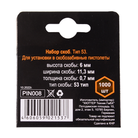 Скобы для мебельного степлера Вихрь (6мм, тип 53)