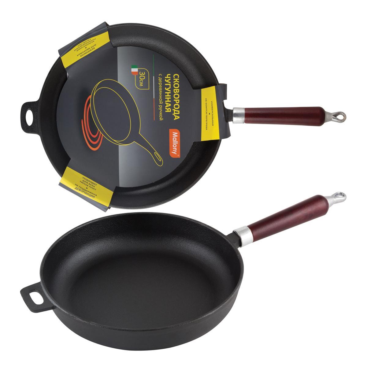 Сковорода Mallony чугунная 30 см, деревянная ручка