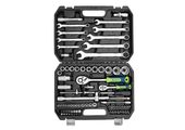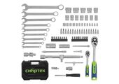 Набор инструментов Сибртех 13389 упакован в пластиковый кейс и состоит из 108 предметов с присоединительным размером 1/2"" и 1/4"", предназначенных для монтажа и демонтажа резьбового крепежа с разными типами шлицев. В комплект поставки входят карданы, удлинители и переходники, облегчающие работу в труднодоступных местах. Набор используется для ремонта автомобилей, а также полезен в быту.
