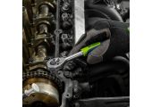 - Трещоточный ключ с цельнокованым корпусом позволяет прикладывать значительное усилие во время работы.
