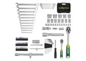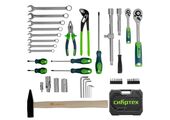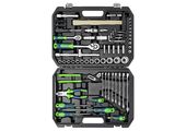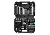 Набор инструментов Gross 14146, 1/4 дюйма, CrV, включает 42 предмета, в том числе ключ-трещотку со 120 зубьями, и предназначен для монтажа и демонтажа резьбовых соединений. Кардан, вороток и совместимые с гаечным ключом удлинители облегчают работу с труднодоступными крепежами. Комплект упакован в кейс из твердого ударопрочного пластика с надежными металлическими замками, в котором инструменты удобно хранить и перевозить. Набор используется для ремонта автомобилей в гараже или условиях автосервиса.