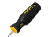 Отвертка Denzel 121727 с трехкомпонентной рукояткой, со стержнем из стали S2, длиной 100 мм, предназначена для закручивания и откручивания резьбового крепежа типа PH0. Высокоточный намагниченный шлиц избавляет мастера от необходимости придерживать винт или саморез рукой. Отвертка рекомендована для профессионального использования.