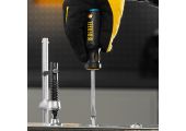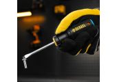 - Намагниченное жало — шлиц надежно фиксируется в головке крепежа, что облегчает работу и позволяет освободить руку.