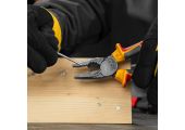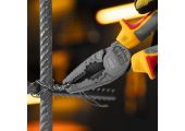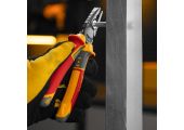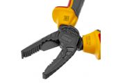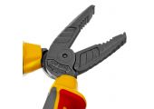 Комбинированные плоскогубцы Denzel 17085 длиной 165 мм, с диэлектрическими трехкомпонентными рукоятками, выдерживающими до 1000 В, предназначены для выполнения работ с токопроводящими элементами. С их помощью можно захватить или согнуть мелкие и крупные детали, перекусить проволоку или перерезать провод. Также плоскогубцы можно использовать в качестве гаечного ключа. Инструмент незаменим для проведения слесарных и монтажных работ с различными компонентами и материалами. Внимание: перед началом работ следует отключить напряжение!