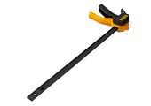F-образная струбцина Sparta 204425, 600 х 120 х 670мм, используется в столярном и слесарном деле и позволяет фиксировать заготовки из металла, древесины и других материалов для их соединения или обработки. Деталь помещают между губками, одна из которых подвижна и служит для регулировки величины захвата. Винтовой зажим позволяет прикладывать значительное усилие для надежной фиксации. Защитные накладки предотвращают повреждение детали. Элементы конструкции выдерживают высокую температуру, поэтому струбцина подходит для проведения сварочных работ, при этом пластиковые накладки необходимо снять.