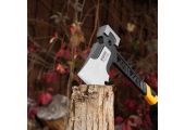 - Комфортная работа — фибергласовое топорище с рельефными прорезиненными накладками поглощает колебания от ударов и не скользит в руках.