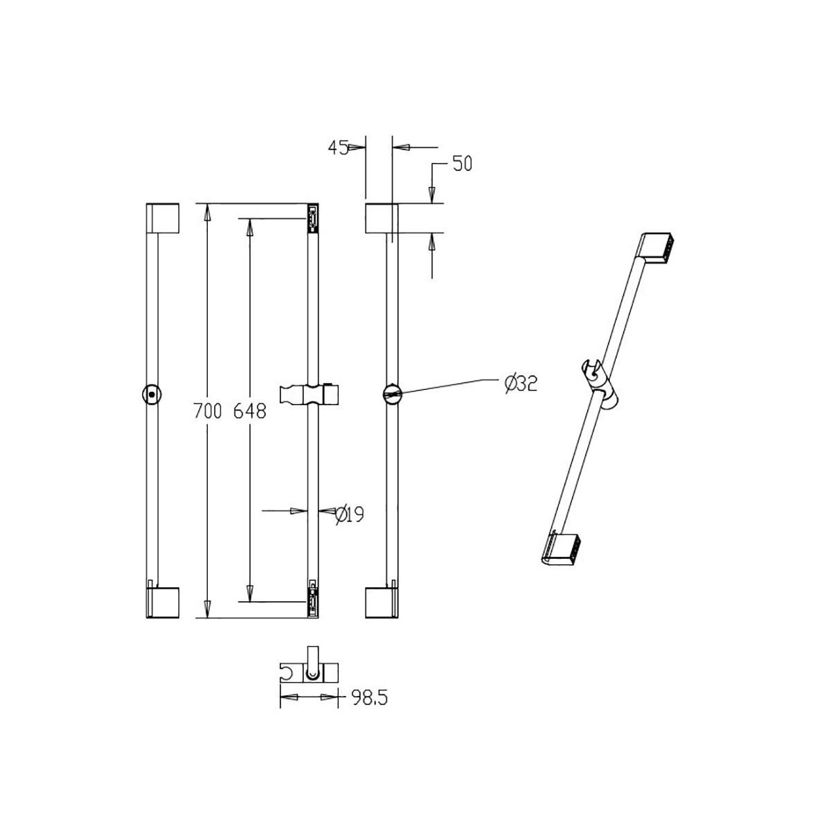 Стойка для душа Milardo 0807000M17, с мыльницей, хром