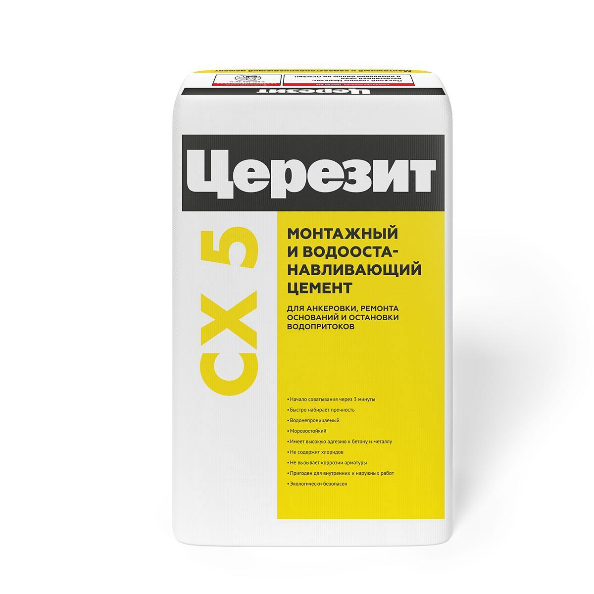 Цемент монтажный водоостанавливающий Церезит (Ceresit) CX 5, 25 кг