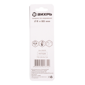 Сверло по керамике и стеклу ВИХРЬ 8 мм