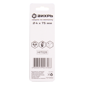 Сверло по металлу ВИХРЬ 4 мм, P6M5