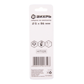 Сверло по металлу ВИХРЬ 5 мм, P6M5