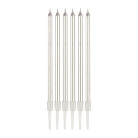 Свечи для торта Волшебная страна, с подставками, 13 см, 6 шт, серебристые
