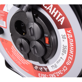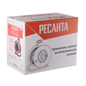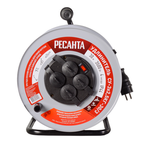 Удлинитель силовой на металлической катушке Ресанта СУ-3х2,5КГ-30/3 (с выкл., 4 розетки, IP44)