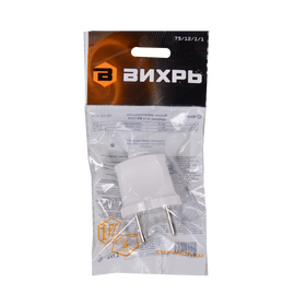 Вилка прямая б/з, белая 6А 250В Вихрь
