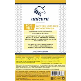Умягчает воду, удаляя соли жёсткости, используя принцип ионного обмена. Удаляет из воды железо, марганец, тяжёлые металлы. Препятствует образованию накипи. Возможна многократная регенерация. Подходит для всех стандартных корпусов фильтров размером 10", магистральных фильтров размера 10", а также для питьевых систем в качестве второй ступени очистки.