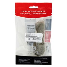 Комплект для герметизации, состоящий из пасты совместно со льном упрощает сборку соединений и их последующую разборку, предотвращает разрыв льняных волокон при сборке, чрезмерное набухание, пересыхание или гниение льна, повышает герметичность соединений. Уникальный состав позволяет использовать пасту вместе со льном для герметизации резьбовых соединений в трубопроводах водоснабжения, газоснабжения и отопления.