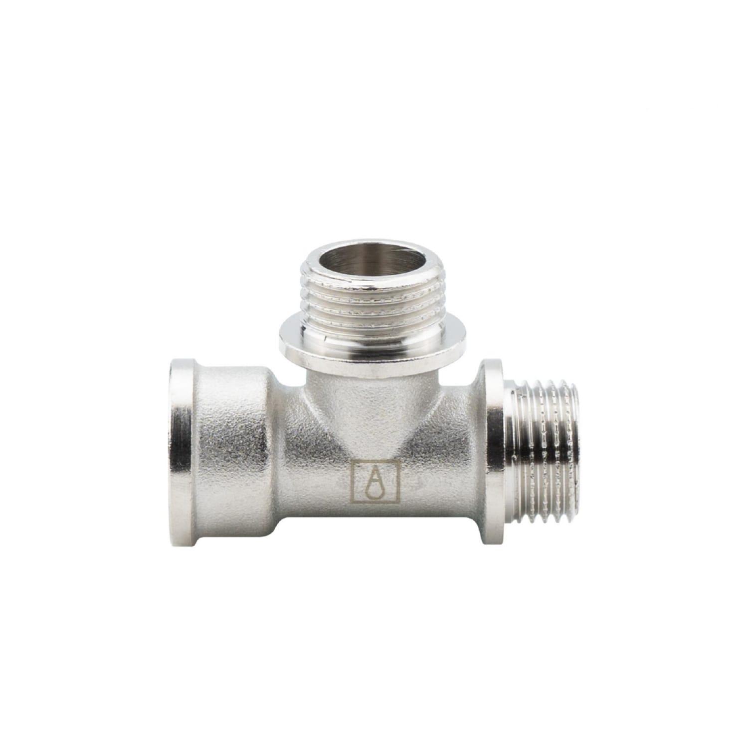 Тройник латунный никелированный Alato внутренняя-наружная-наружная резьба 1/2"