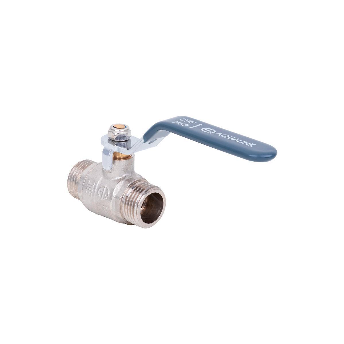 Кран шаровой латунный Aqualink, 1/2", ГОСТ, наружная/наружная резьба, ручка