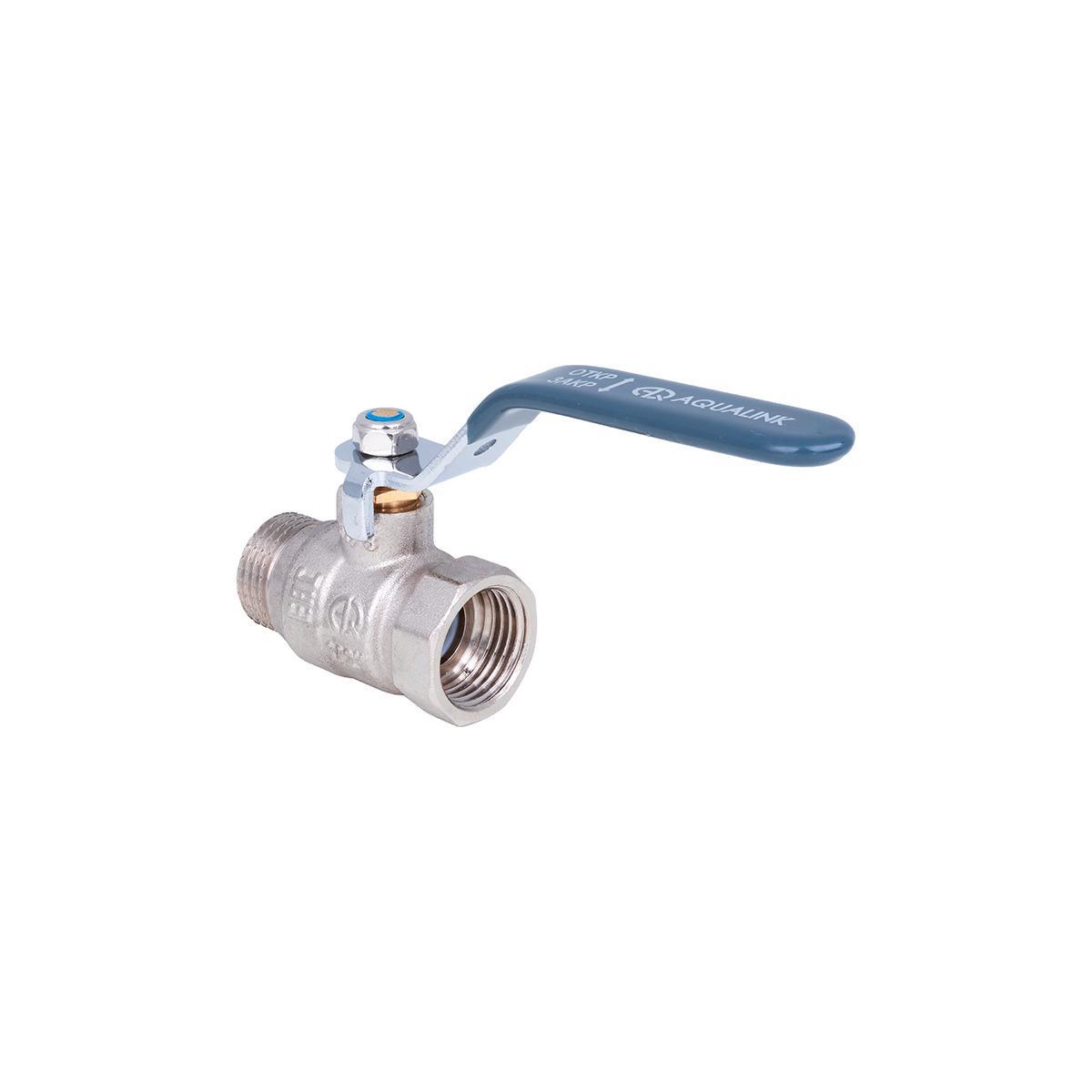 Кран шаровой латунный Aqualink, 1/2", ГОСТ, внутренняя/наружная резьба, ручка