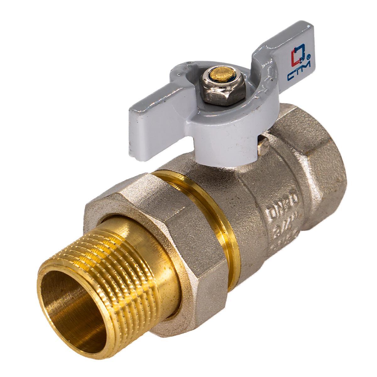 Кран шаровой латунный СТМ, 1", с накидной гайкой, бабочка