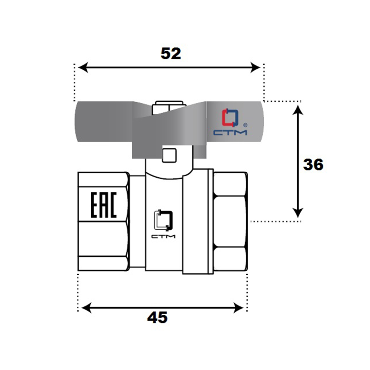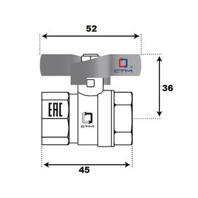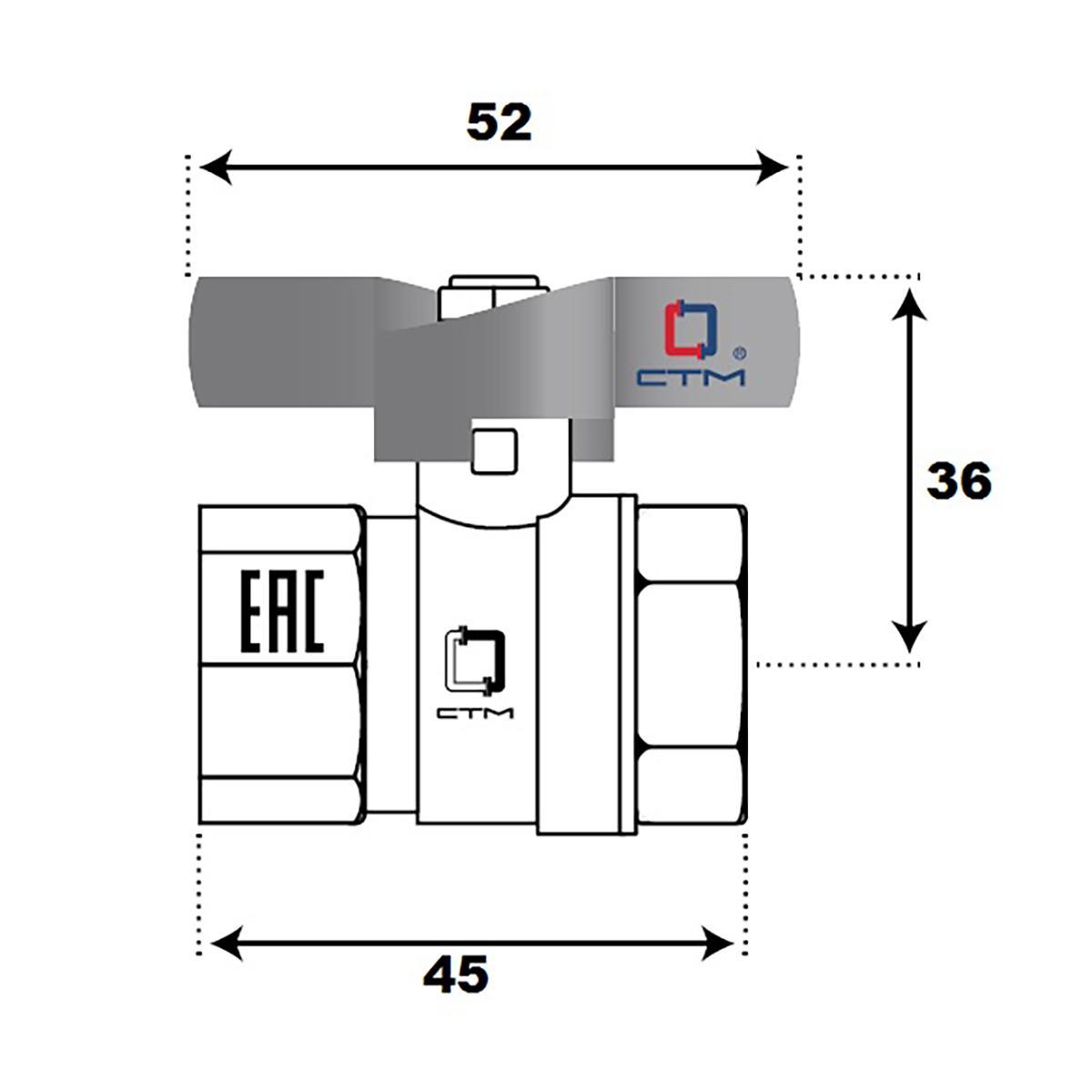 Кран шаровой СТМ, 1/2", внутренняя/внутренняя резьба, бабочка