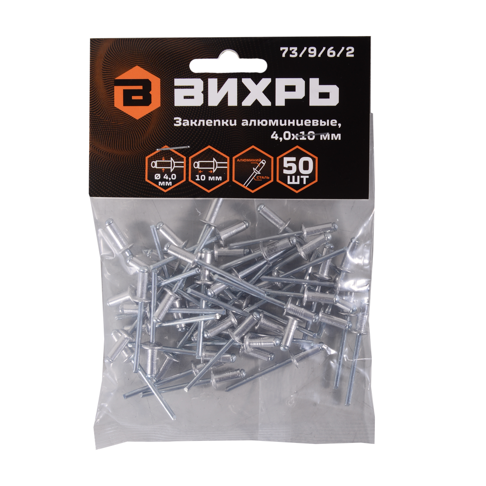Заклёпки алюминиевые Вихрь 4,0х10 мм, 50 шт.