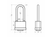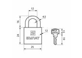 Замок навесной общехозяйственного назначения. Корпус - стальной, дужка выполнена из закаленной стали. В комплекте идёт набор стальных ключей. Имеет функцию автоматического запирания. Упаковка - картонная коробка. Гарантия 5 лет.