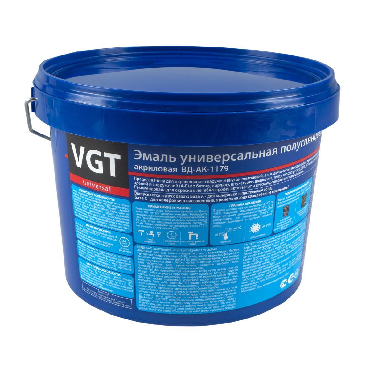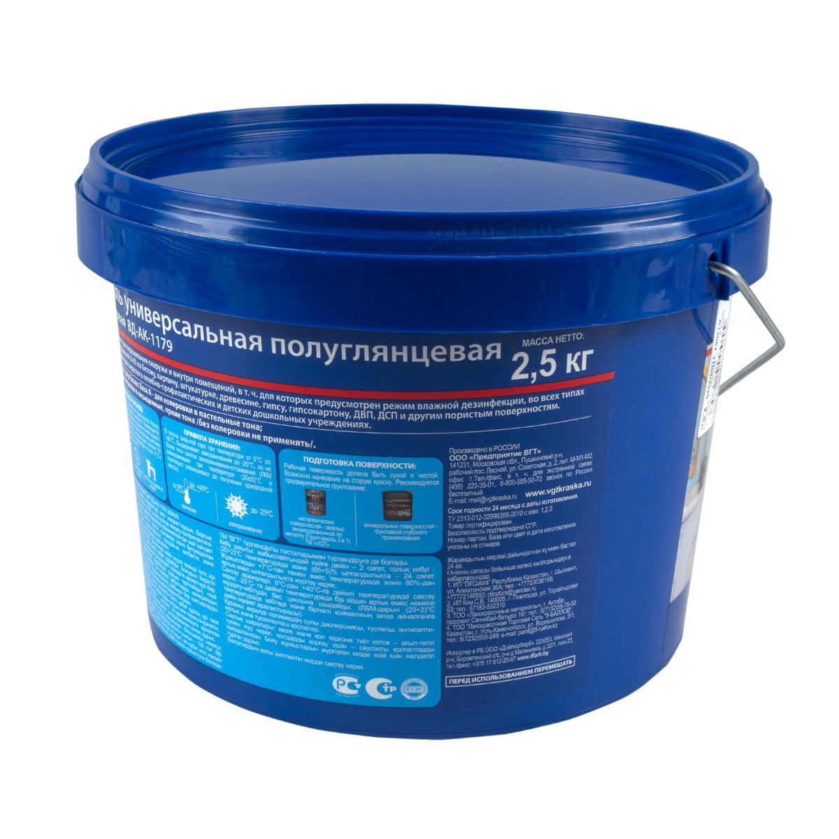 Эмаль универсальная VGT ВД-АК-1179, полуглянцевая, база A, супербелая, 2,5 кг