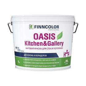 Краска для стен и потолков устойчивая к мытью Oasis Kitchen@Gallery FINNCOLOR 9,0л бесцвет. (база С)