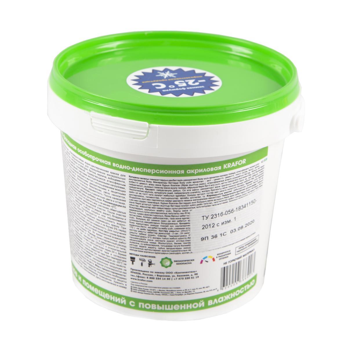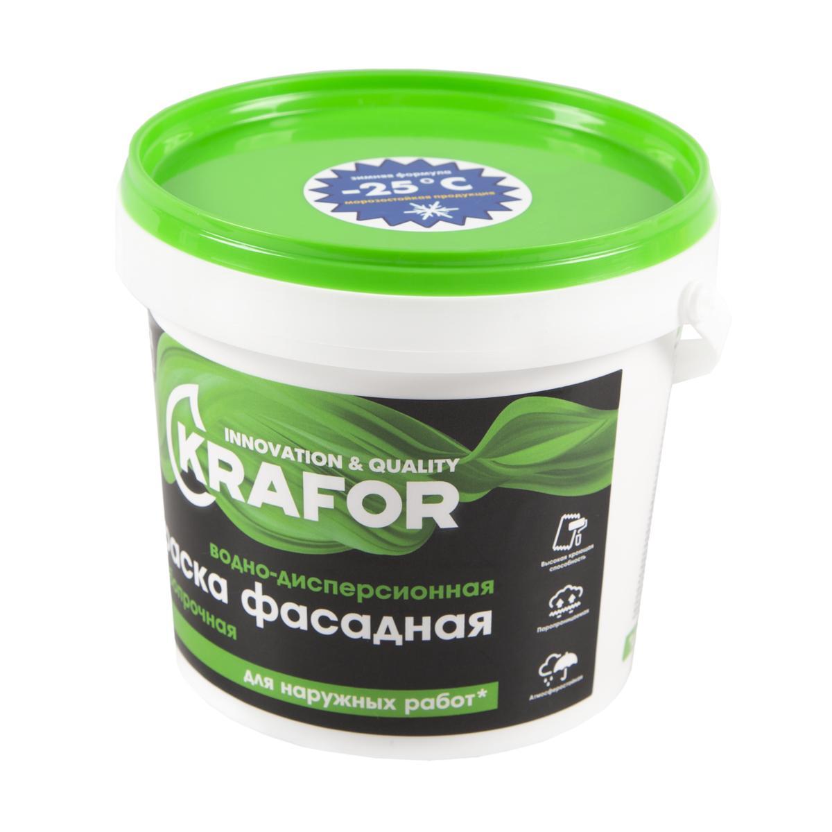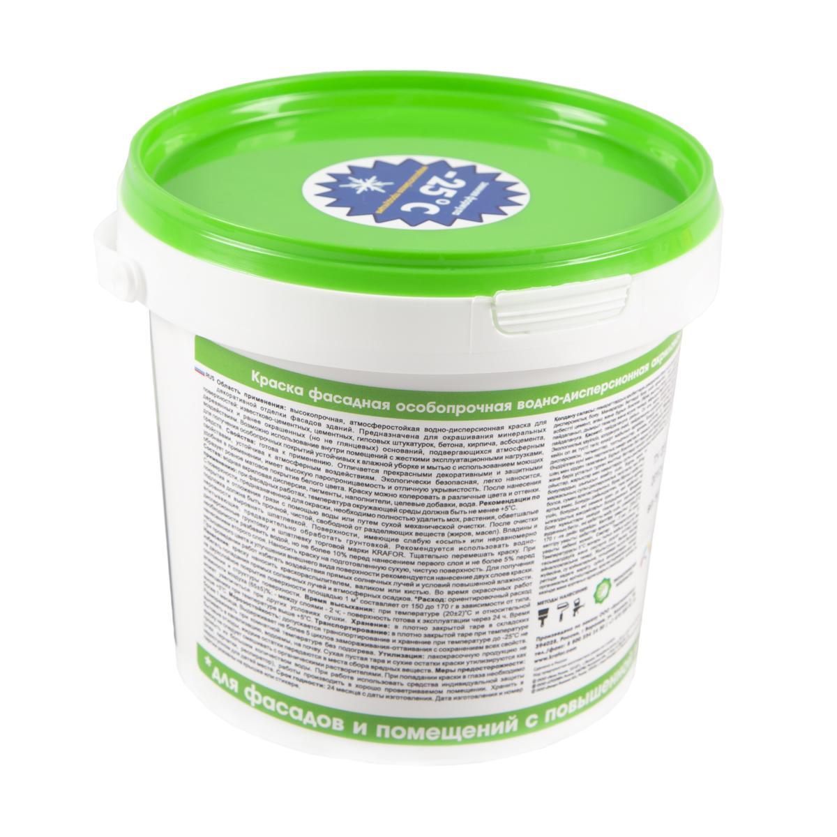 Краска водно-дисперсионная фасадная особопрочная Krafor, 1,5 кг, белая